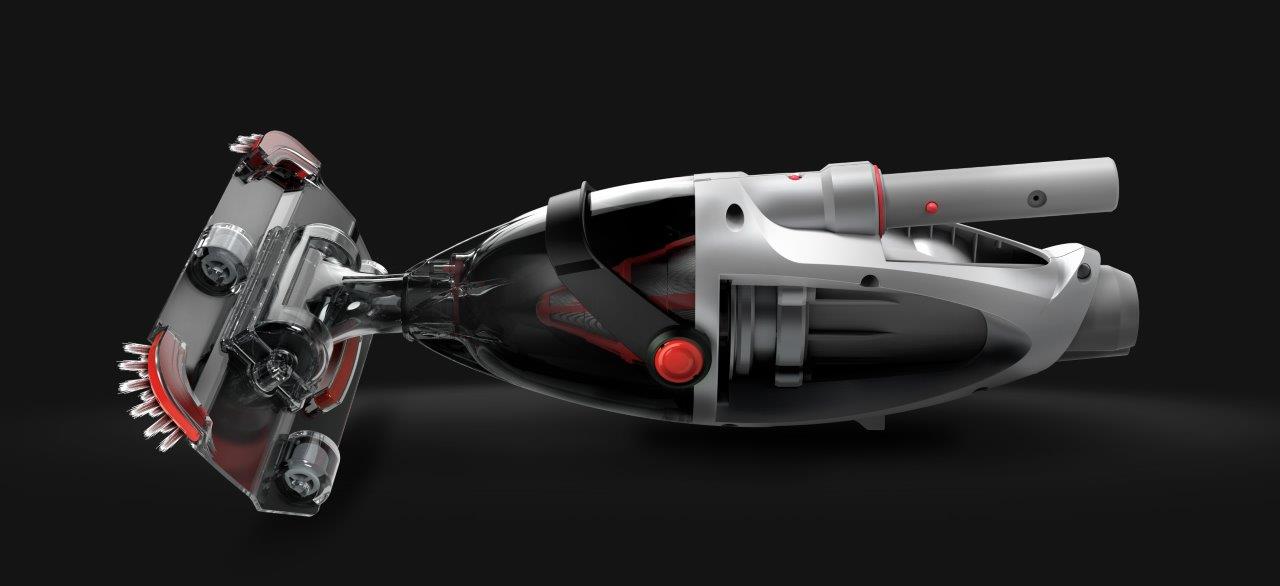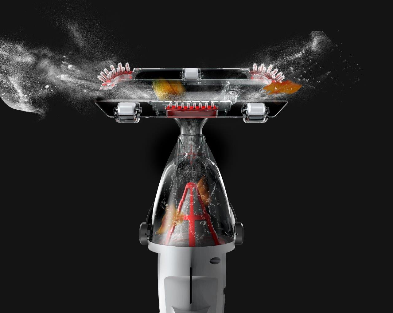 - Vysavač lze držet za ergonomickou rukojeť nebo ho lze připojit ke standartní teleskopické tyči (není součástí dodávky)