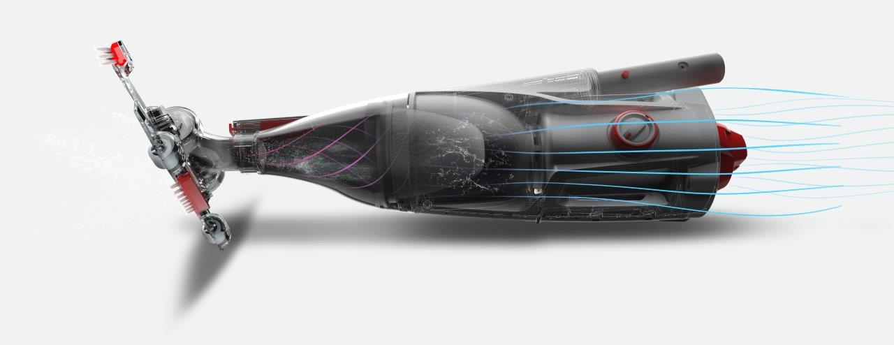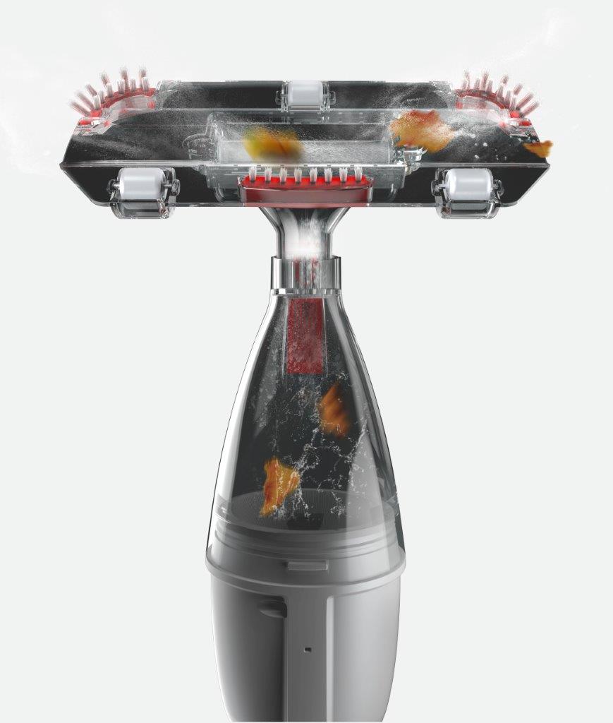 - Vysavač lze držet za ergonomickou rukojeť nebo ho lze připojit ke standartní teleskopické tyči (není součástí dodávky)