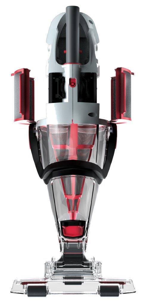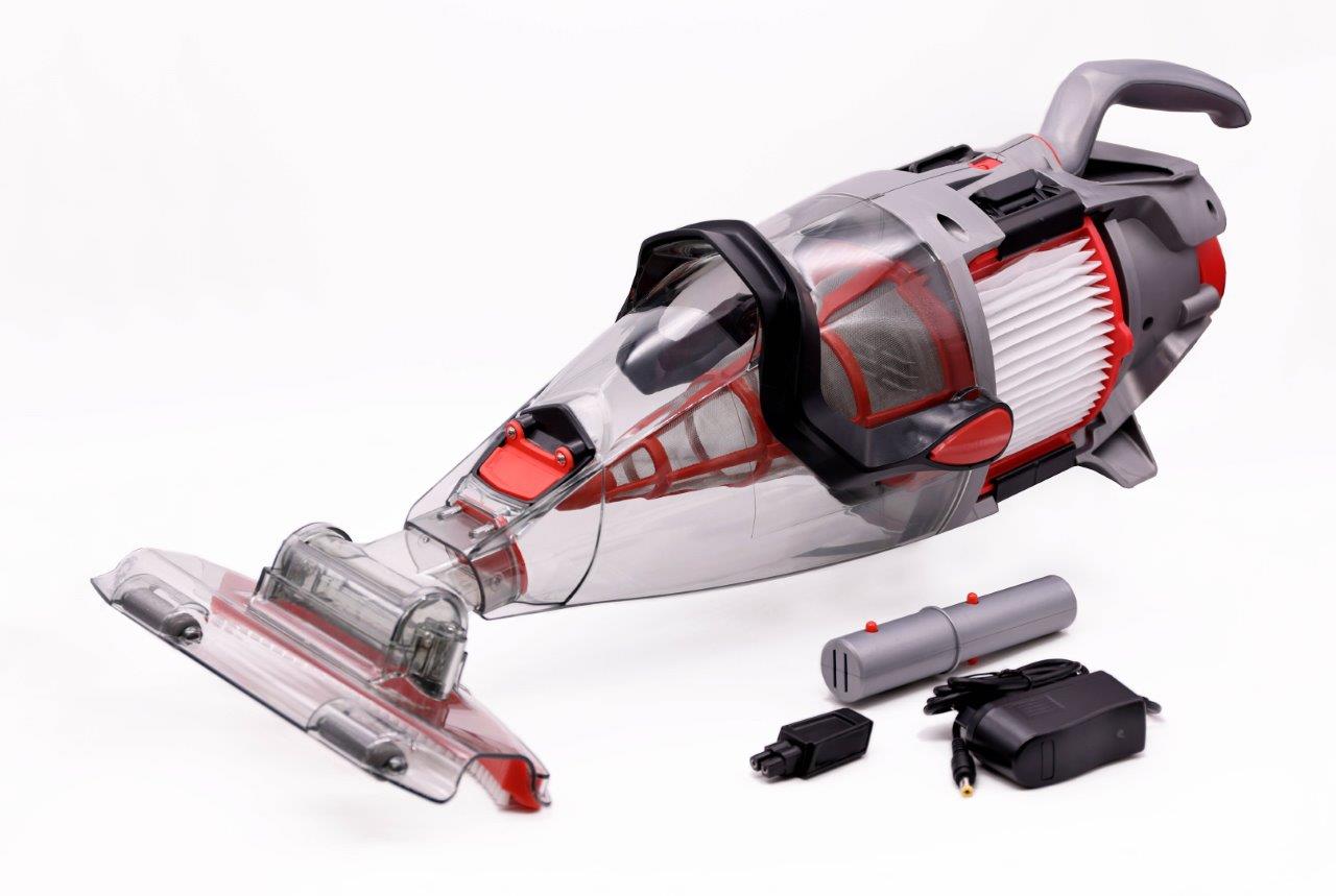 - Vysavač lze držet za ergonomickou rukojeť nebo ho lze připojit ke standartní teleskopické tyči (není součástí dodávky)