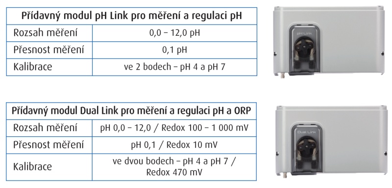 Automatickou jednotku pro úpravu slané vody MagnaPool ® iQ lze rozšířit o modul pH Link pro měření a dávkování pH a procentuelní výrobu chlóru nebo o modul Dual Link pro měření a dávkování pH a měření ORP. Navíc lze připojit filtrační čerpadlo a až další dva přidružené systémy jako např. světla, atrakci apod. Všechny parametry a přidružené systémy je možné sledovat přes internet v aplikaci iAquaLink.