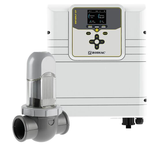 Zodiac® GENSALT OT 18 má krytí IP43 a maximální produkcí chlóru 18g/h pro privátní bazény do 70 m3