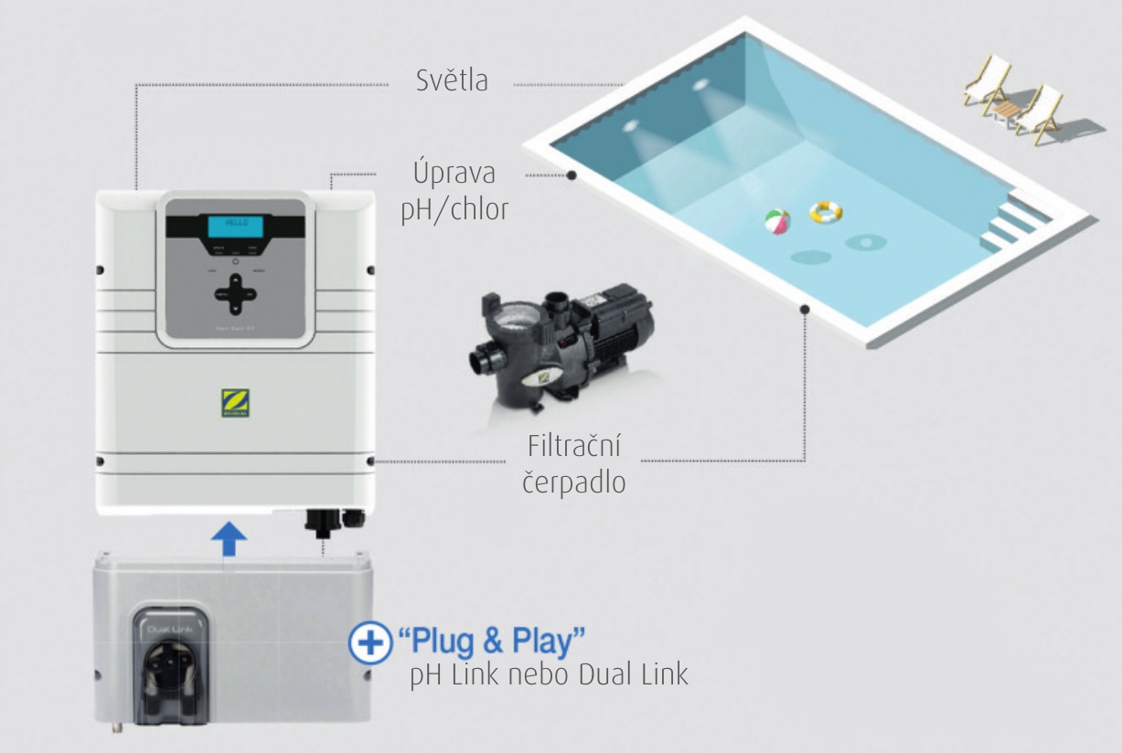 GenSalt OT je salinizační jednotka určená pro ošetřování bazénu se slanou vodou. Jedná se o efektivní a praktický systém, který lze rozšířit o modul pH Link pro měření a dávkování pH nebo o modul Dual Link pro měření a dávkování pH a měření ORP.