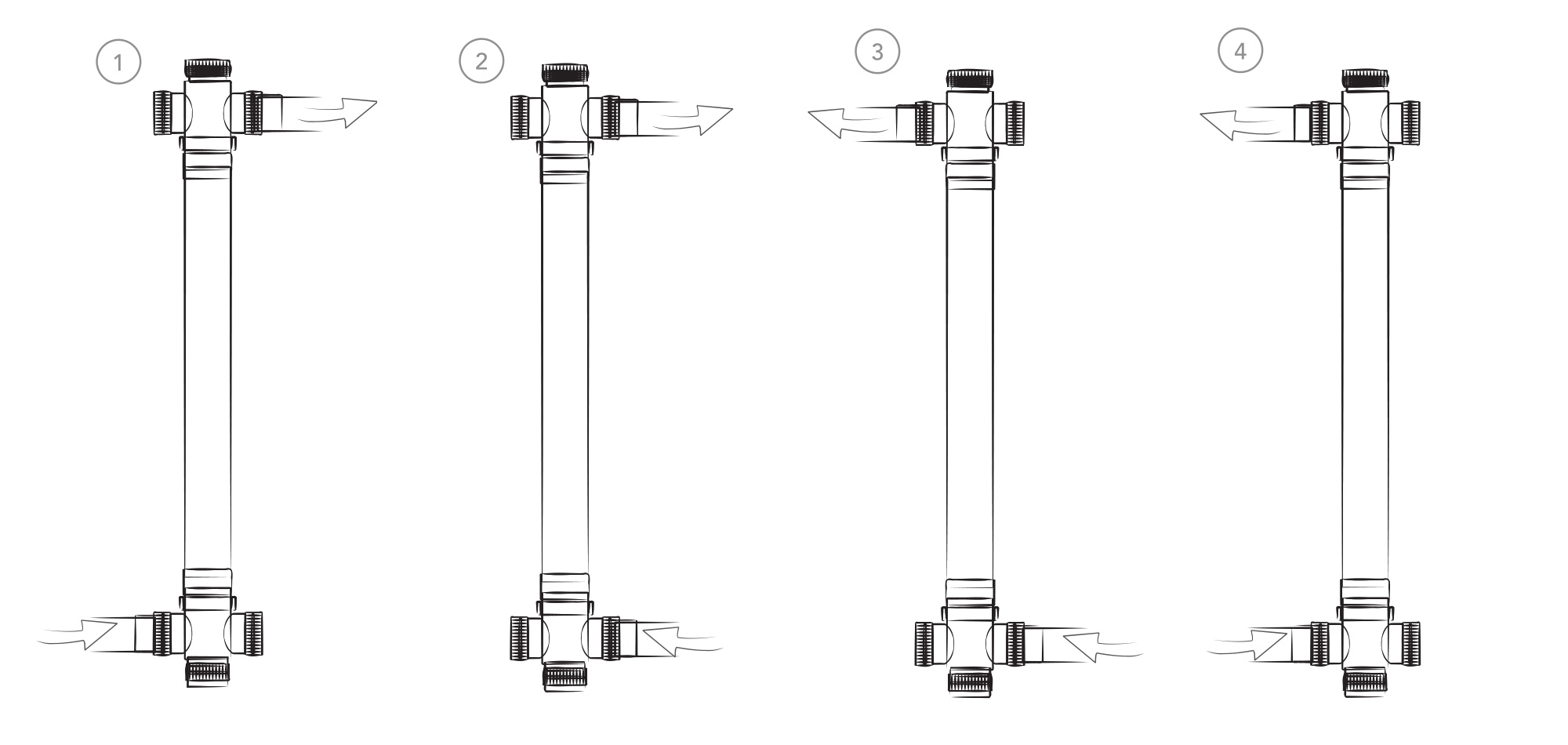 UV-C sterilizátor s možností volby umístění vstupu / výstupu v rozsahu 180°