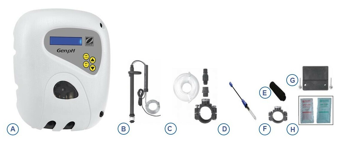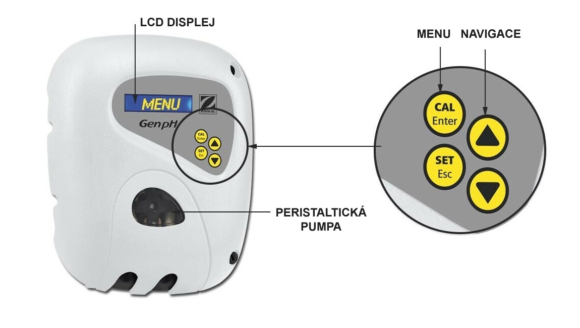 ZODIAC Gen pH je automatická jednotka pro úpravu vody, přesněji je určen pro dávkování pH do vodního okruhu. Součástí jednotky je i pH sonda pro přesné měření obsahu pH v bazénové vodě. Na základě naměřených hodnot dávkuje kyselinu (popř. zásadu - záleží na nastavení) pomocí peristaltického čerpadla přímo do vodního okruhu.