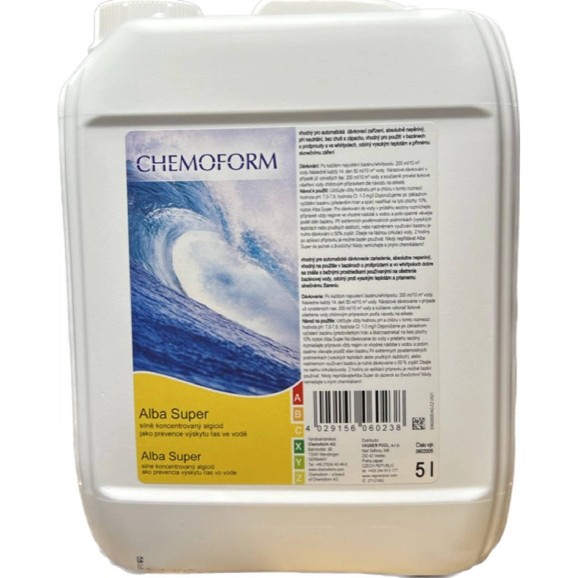 Algicid Alba Super (protiřasový přípravek) tekutý nepěnivý. Vhodný do všech typů bazénů včetně protiproudů a atrakcí, whirlpoolů.