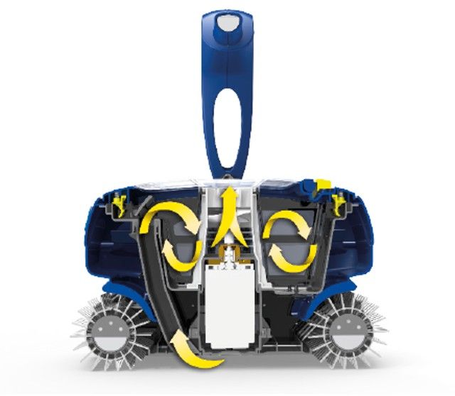 Technici Zodiac® vytvořili prvního robota pro bazény se sacím cyklónem. Díky této technologii se uvnitř filtru vytváří velmi účinný vír. Nečistoty jsou tak zachytávány v suspenzi, což předchází ucpání filtru a umožňuje dosáhnout konstantní tlak sání.