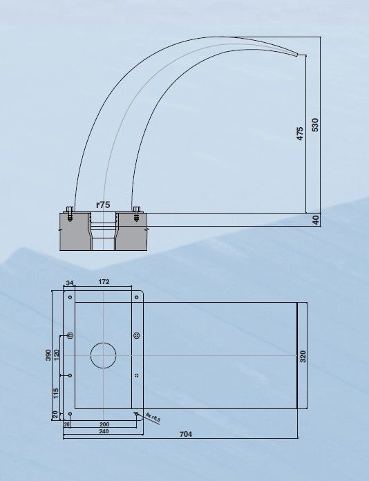 Chrlič Delfín 320 mm, nerez, připojení 75 mm, povrch zrcadlový lesk