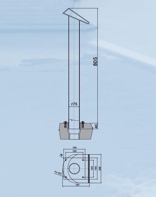 Chrlič půlměsíc vysoký, š 200 mm, proud vody dolu, připojení 75 mm, lesk