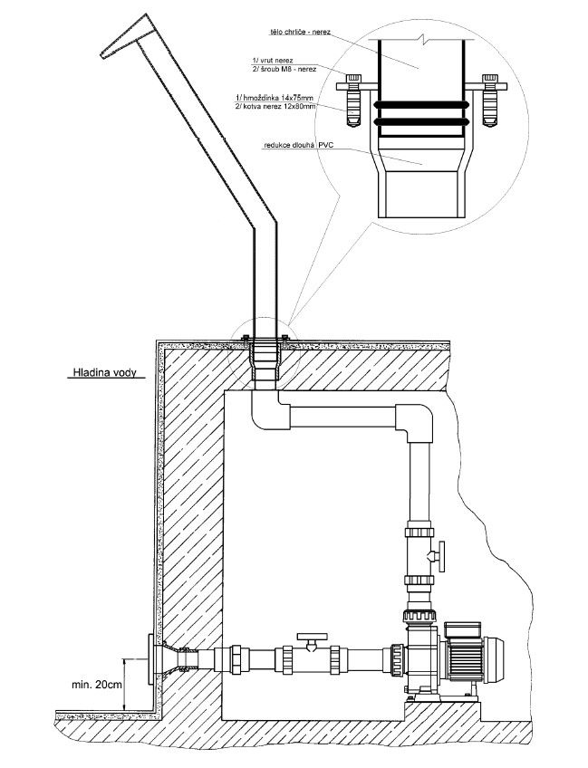 Jedná se o doplněk k bazénu - chrlič vody patří k oblíbeným vodním atrakcím, který tvoří efektní vodopád. Chrliče se umisťují na okraj bazénu, propojují se pomocí samostatného cirkulačního okruhu, který je tvořen bazénovým sáním, potrubím a oběhovým bazénovým čerpadlem (výkon čerpadla je nutné volit v závislosti na velikosti otvoru chrliče, vzdálenosti a záhybech potrubí a očekávané intenzity proudu vody)