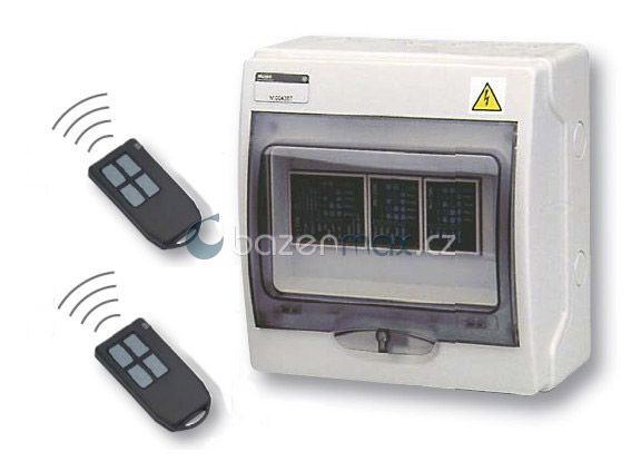 Radiové ovládání elektrických zařízení: toto zařízení je vhodné použít, například pro lepší komfortnost obsluhy, nebo tam, kde není možnost, nebo je složité zajistit spínání el. spotřebičů pomocí klasického vypínače s mechanickým kontaktem. Tímto způsobem (radiové spínání) můžeme spínat až 16 různých el. zařízení do vzdálenosti cca 30 m. Pokud by tato vzdálenost nepostačovala, je možno zařízení vybavit zesilovačem. Spínání pomocí klíčenky.