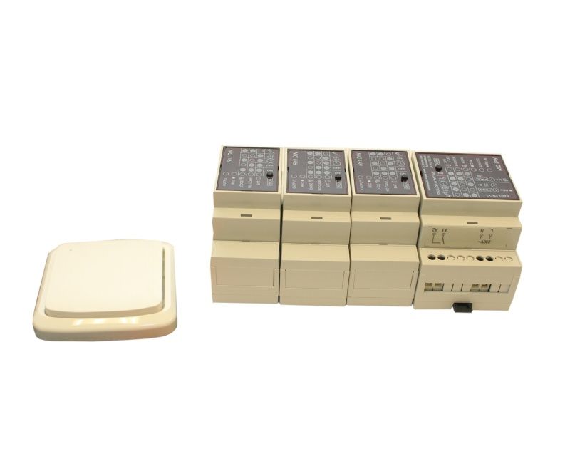 Radiové ovládání elektrických zařízení: toto zařízení je vhodné použít, například pro lepší komfortnost obsluhy, nebo tam, kde není možnost, nebo je složité zajistit spínání el. spotřebičů pomocí klasického vypínače s mechanickým kontaktem. Tímto způsobem (radiové spínání) můžeme spínat až 16 různých el. zařízení do vzdálenosti cca 30 m. Pokud by tato vzdálenost nepostačovala, je možno zařízení vybavit zesilovačem. Spínání pomocí pevného vysílače na zeď.