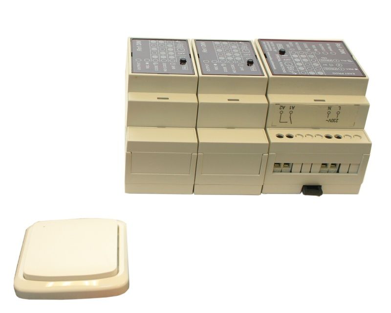 Radiové ovládání elektrických zařízení: toto zařízení je vhodné použít, například pro lepší komfortnost obsluhy, nebo tam, kde není možnost, nebo je složité zajistit spínání el. spotřebičů pomocí klasického vypínače s mechanickým kontaktem. Tímto způsobem (radiové spínání) můžeme spínat až 16 různých el. zařízení do vzdálenosti cca 30 m. Pokud by tato vzdálenost nepostačovala, je možno zařízení vybavit zesilovačem. Spínání pomocí pevného vysílače na zeď.