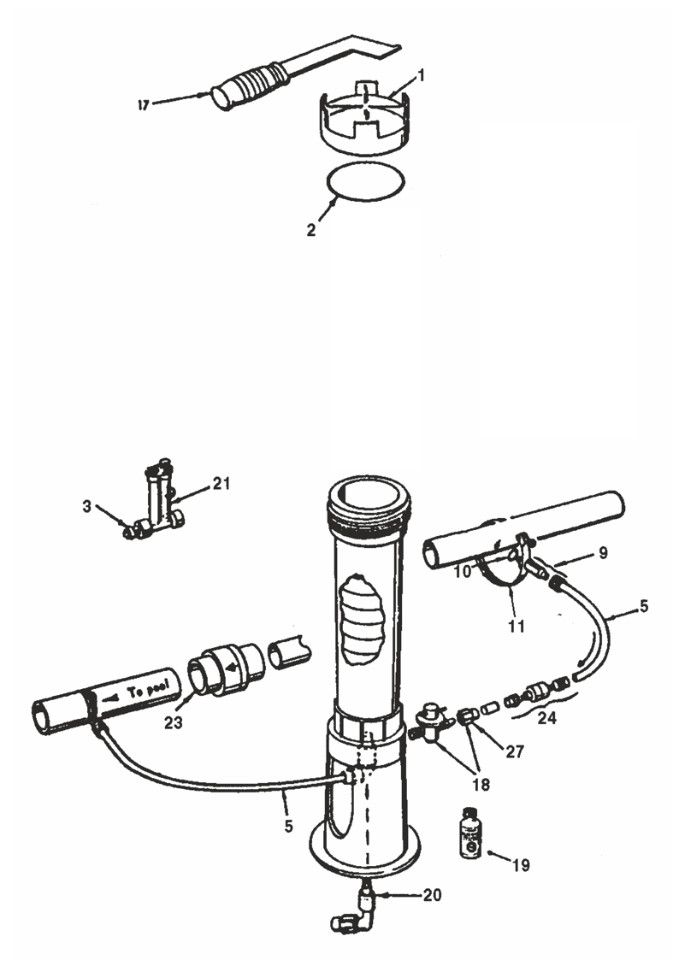Umísťuje se na výstup z filtrace eventuálně za tepelný výměník, do dávkovače lze vložit až 11 chlorových tablet.