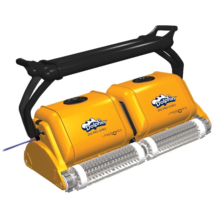 Dolphin 2x2 PRO GYRO je vysoce účinný, plně automatický vysavač vhodný zejména pro veřejné bazény a koupaliště, vybavený dálkovým ovládáním. Přesné scanování CleverClean umožňuje optimální pokrytí dna, stěn a vodní linky bazénu. Vysokokapacitní filtrace, která zachytí bakterie, vlasy, hmyz, listy a jiné nečistoty, zvýší kvalitu vody bez použití chemikálií.