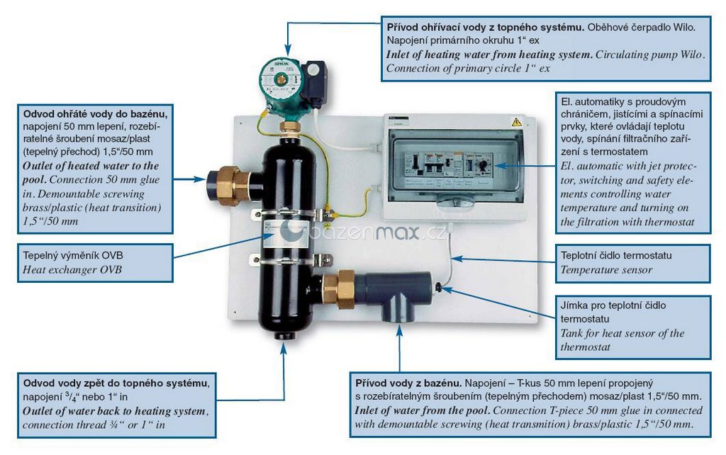 - tepelného výměníku (vývody šroubením mosaz/plast 1,5“/50 mm)