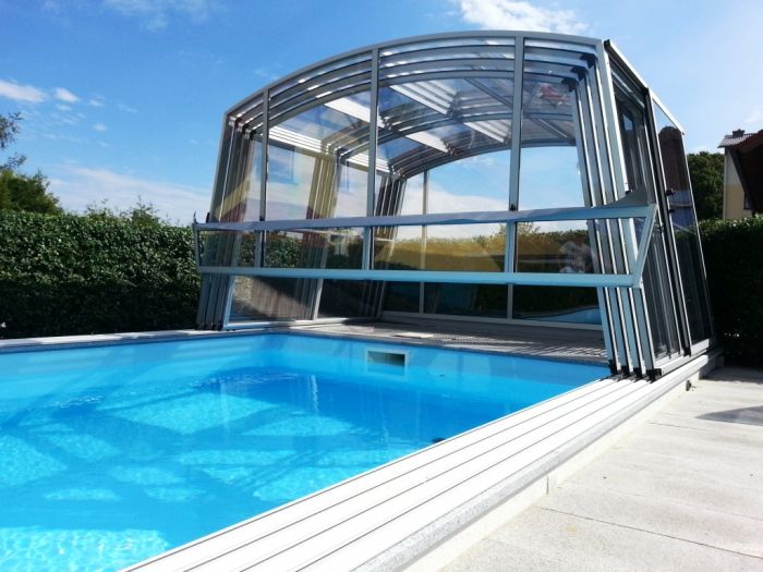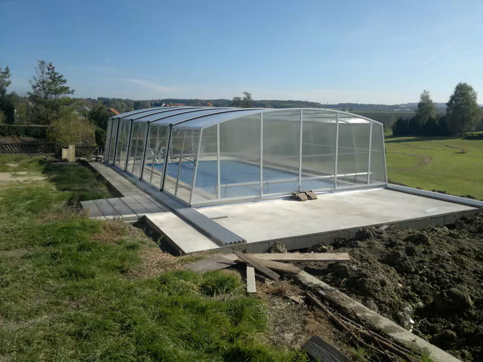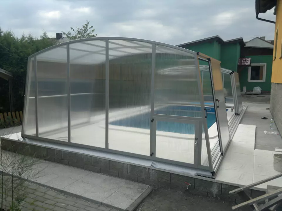 je vysoký podchozí model zastřešení bazénu. Jeho výška dovoluje pohodlně využívat prostor před, za i podél obou stran bazénu. Zejména při nepříznivějším počasí oceníte tyto jeho konstrukční výhody a budete si užívat volnost pohybu kolem Vašeho bazénu. Hliníková konstrukce zastřešení STAR je standradně vyrobena v úpravě stříbrný Elox, na přání pak dodáváme provedení v komaxitové barvě dle vzorníku RAL.