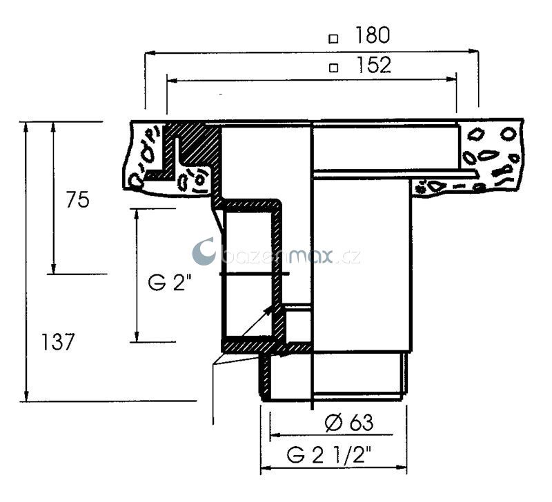 Podlahová výpust ABS, nerez mřížka AISI 316 – pro betonové bazény, napojení 2“ in