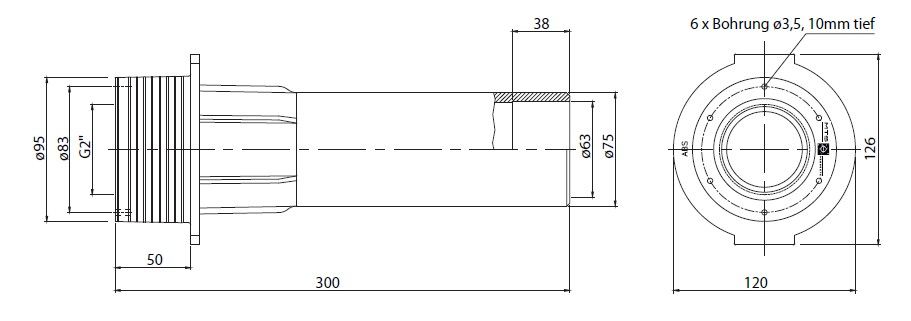 Průchod stěnou bazénu R 2“ x 2“, 75x63x300MM
