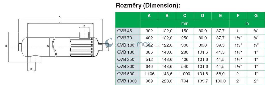 Tepelný výměník OVB 500, 145,0 kW, (122 000 kcal.)