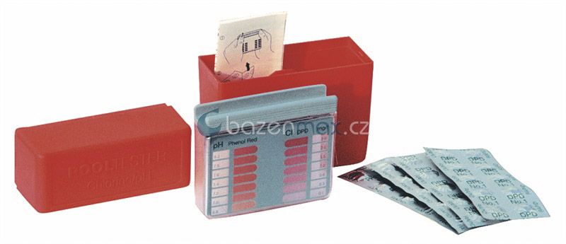 Tester DPD pracuje na principu vizuálního porovnání s barevným vzorníkem vedle odběrných komor - po přidání tablet (chlor/pH) se voda zabarví, dle výsledků je potřeba upravit hodnotu chloru/pH v bazénu.