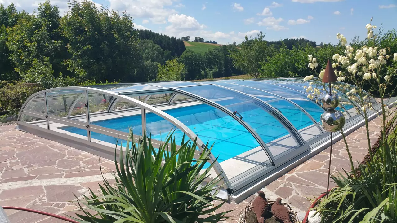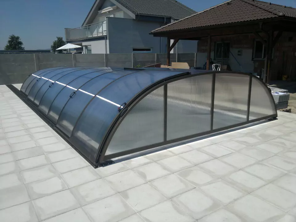 je zákazníky velmi žádaný nízký model zastřešení bazénu, který vyníká svým elegantním vzhledem s čistými křivkami a to vše za příznivou cenu. Dostatečná tuhost konstrukce nám dovoluje tento typ zastřešení vyrobit pouze o několik málo centimetrů vyšší, než provedení DREAM. Hliníková konstrukce zastřešení HORIZONT je standradně vyrobena v úpravě stříbrný Elox, na přání pak dodáváme provedení bronzový Elox nebo úpravu v komaxitové barvě dle vzorníku RAL.